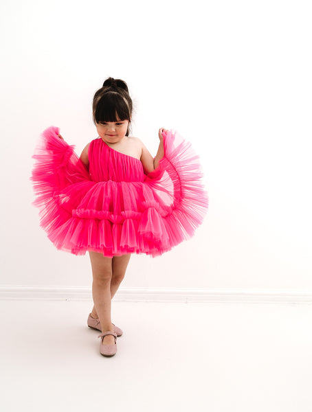 Solférino dress in pink will give your little princess a doll-like look. Bright pink color gives brightness and charming loose at the same time.